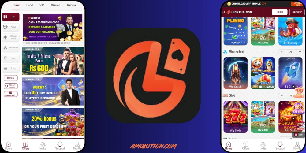 Luck pub is a mobile casino-style earning app created especially for Pakistani users. It offers different types of games such as slots, poker, crash games, lottery-style games, and card-based entertainment. The app is lightweight, runs smoothly, and looks colorful and modern even on low-end phones.